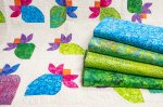 Prickly Pears is a fun and bright quilt made with easy dimensional curves. The quilt features a unique prickly pear block using a variety of fabrics and colors.